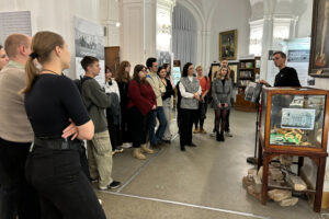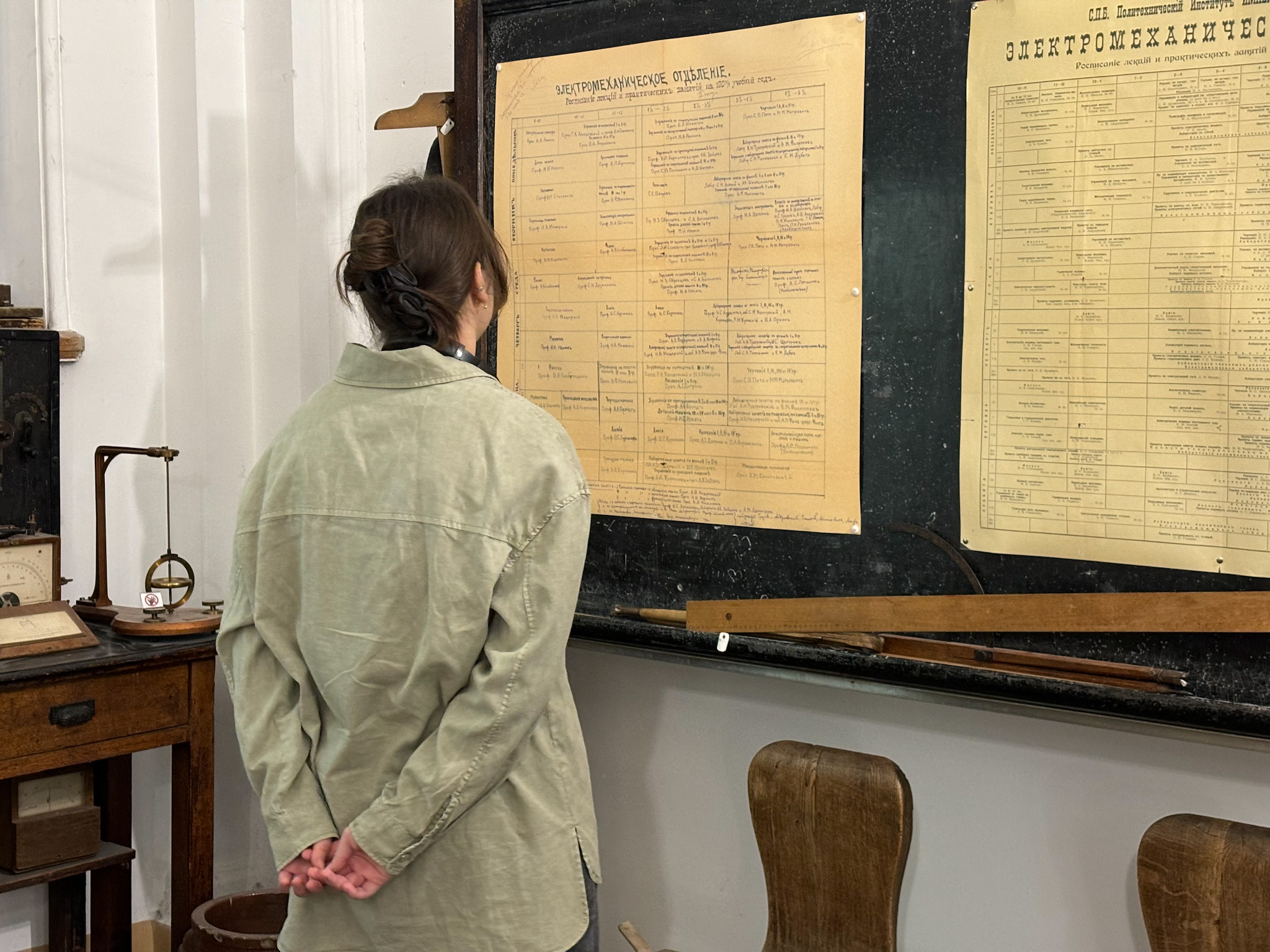 В программе первого учебного дня было запланировано посещение музея истории политехнического университета. Студентам рассказали о строительстве политехнического университета, особенностях обучения и проживания студентов. Рассказ охватил несколько эпох: становление университета, университет в годы Первой мировой войны, начало советской эпохи и Второй мировой войны.