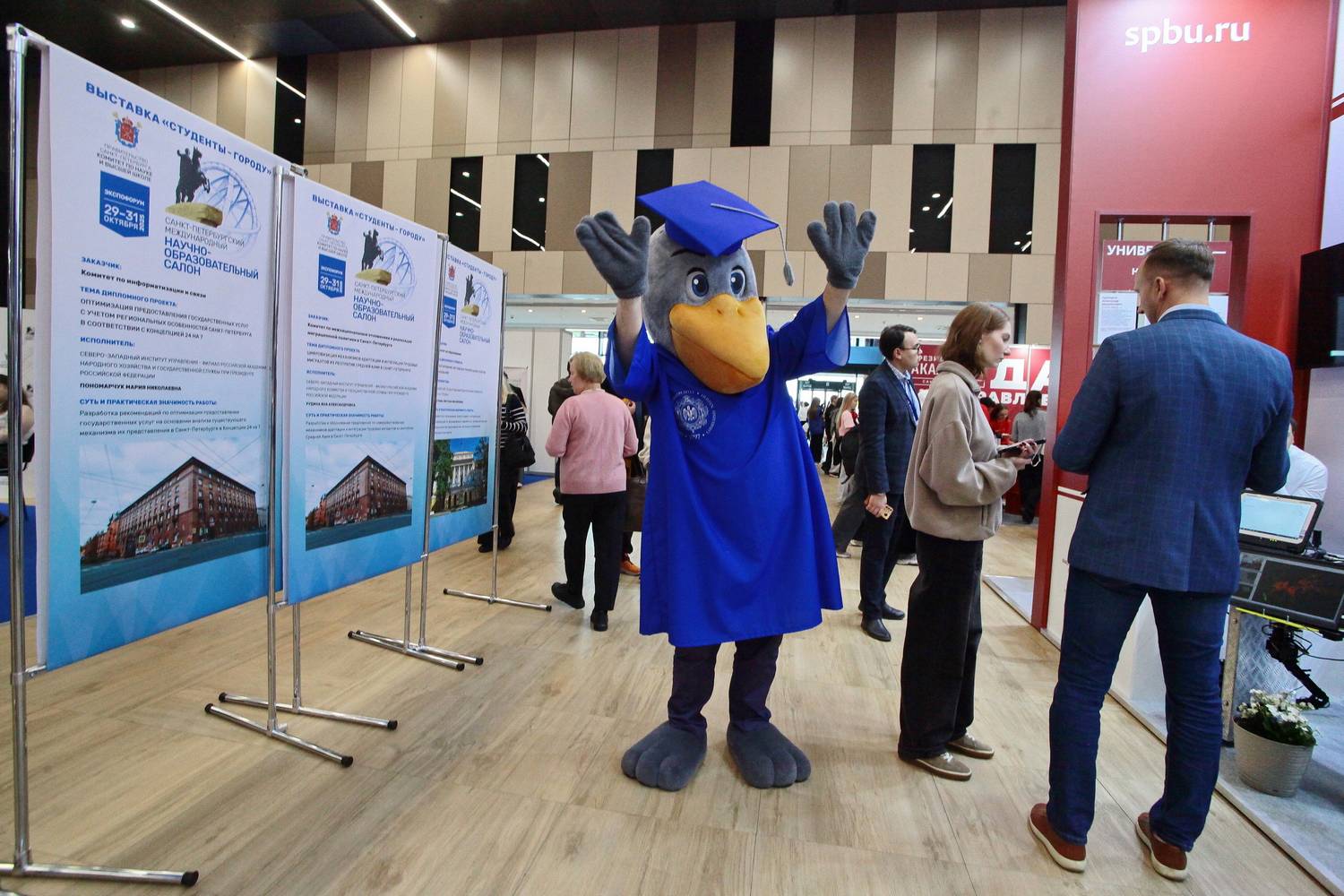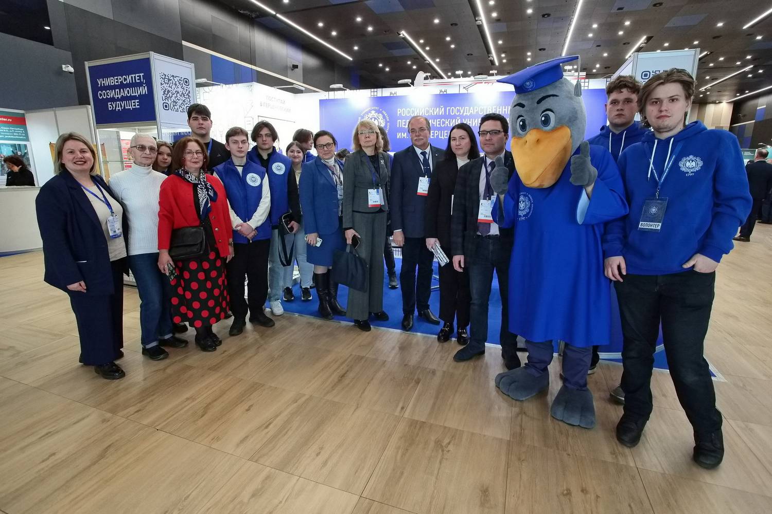 Ребята с большой ответственностью подошли к поставленным задачам: консультировали абитуриентов и посетителей выставки, активно приглашали участников мероприятия посетить стенд Герценовского университета, раздавали информационные листовки всем желающим. Особенно хочется отметить официального маскота РГПУ – Пеликана – роль которого исполнил студент третьего курса, староста группы, Мирченко Илья Алексеевич. Яркий и запоминающийся костюм привлекал внимание участников выставки и вызывал позитивные эмоции. Многие с удовольствием подходили, чтобы сфотографироваться с Пеликаном на фоне стенда РГПУ им. А. И. Герцена.