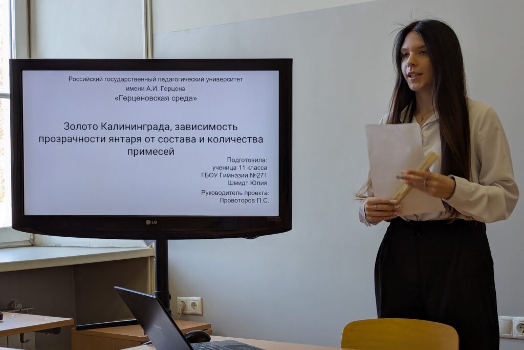 11 марта в институте физики завершился весенний этап профориентационной программы «Герценовская среда». Итоговым событием стала конференция-конкурс, на которой старшеклассники из Санкт-Петербурга представили результаты своих первых научных изысканий.