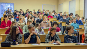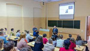 13 ноября в институте физики в рамках образовательного проекта «Современные достижения науки и техники» состоялась первая в этом учебном году научно-популярная лекция «Зачем и как мы измеряем небо? Лектор: Максим Юрьевич Ховричев, к. ф.-м. н., зам. директора по научной работе Пулковской астрономической обсерватории РАН, доцент кафедры астрономии СПбГУ, ст. н. с. Института прикладной астрономии РАН, ассоциированный исследователь Парижской обсерватории.