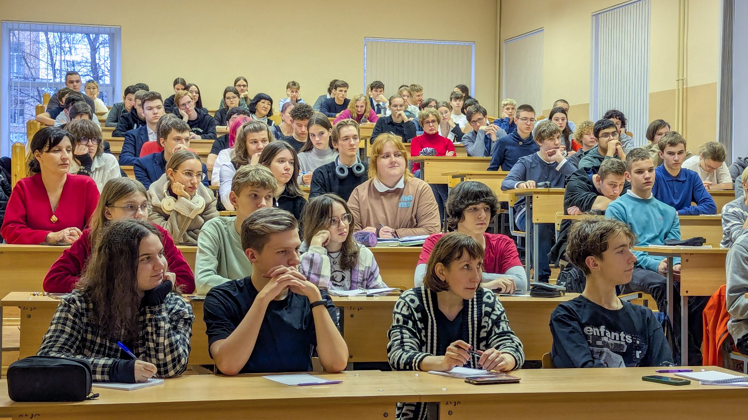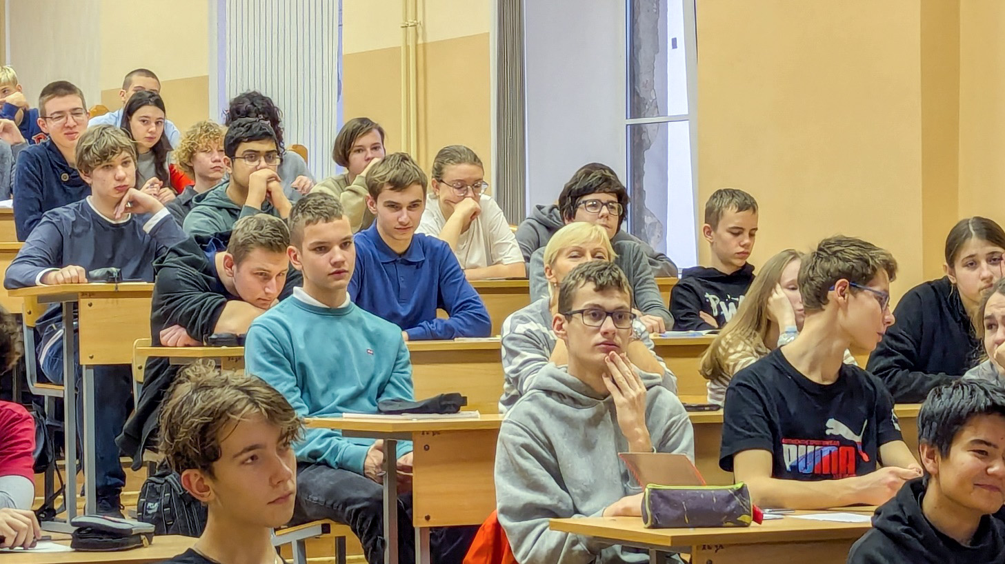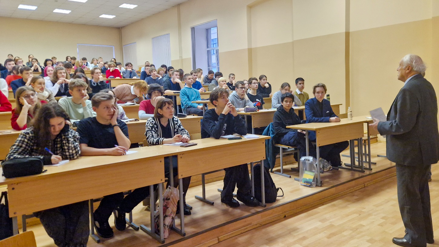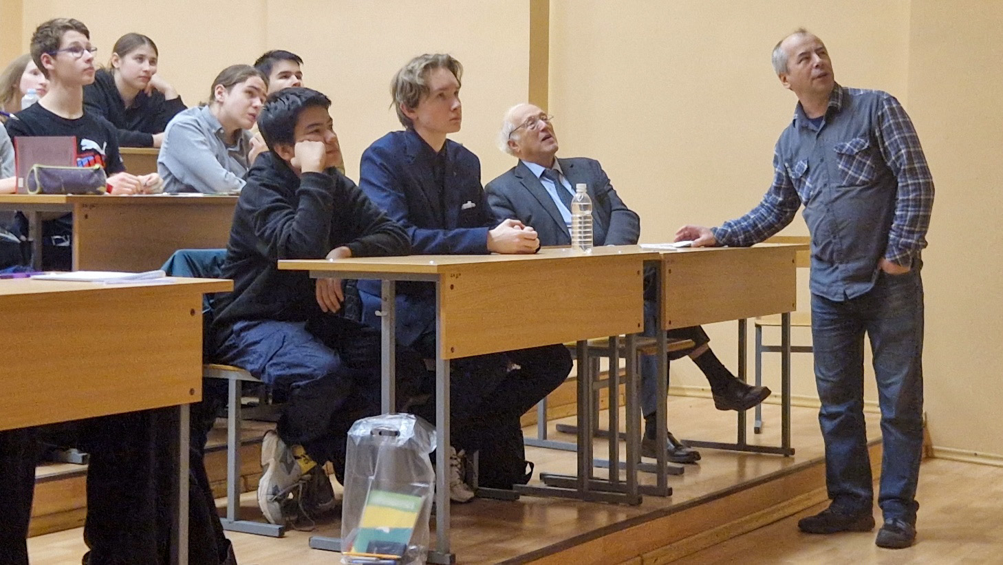 Основная часть лекции была посвящена знакомству школьников с таким направлением астрономической науки, как астрометрия. Ее главная задача – точное определение положения небесных объектов и векторов их скоростей. Простой пример – изучение траектории астероида, сгорающего в атмосфере Земли. Для этого проводится наблюдение этого явления из нескольких точек, расположенных на расстоянии сотен километров друг от друга, а затем решается геометрическая задача об определении, например, координат места падения астероида. Важными и интересными для астрономической науки являются задачи об определении координат значительно более удаленных объектов, например, черных дыр. Обсуждению таких проблем и была в основном посвящена лекция. Для решения практических задач исследования Вселенной астрометристы используют результаты наблюдений из точек, максимально удаленных на нашей планете, изучают объекты из одной обсерватории по мере движения Земли вокруг Солнца, применяют и другие методы.