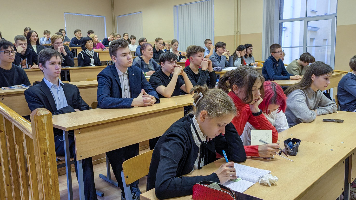 Лекция вызвала большой и заслуженный интерес, аудитория была полностью заполнена, присутствовали около 100 учащихся и преподавателей из 8 школ города и области и 13 студентов разных курсов института физики. Максим Юрьевич Ховричев покорил широтой своих знаний, харизмой и чувством юмора.