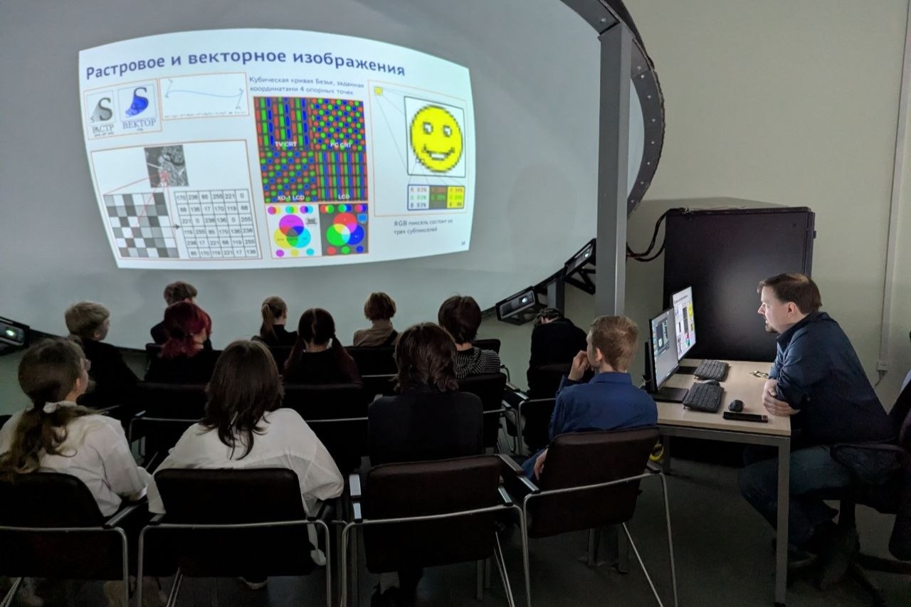 Учащиеся 8 класса школы № 89 Калининского района совершили увлекательное путешествие в мир большой науки, посетив астрономический кластер института физики РГПУ им. А. И. Герцена. Центральным событием экскурсии стало увлекательное занятие в цифровом планетарии, которое провел директор обсерватории Дмитрий Сергеевич Родионов.