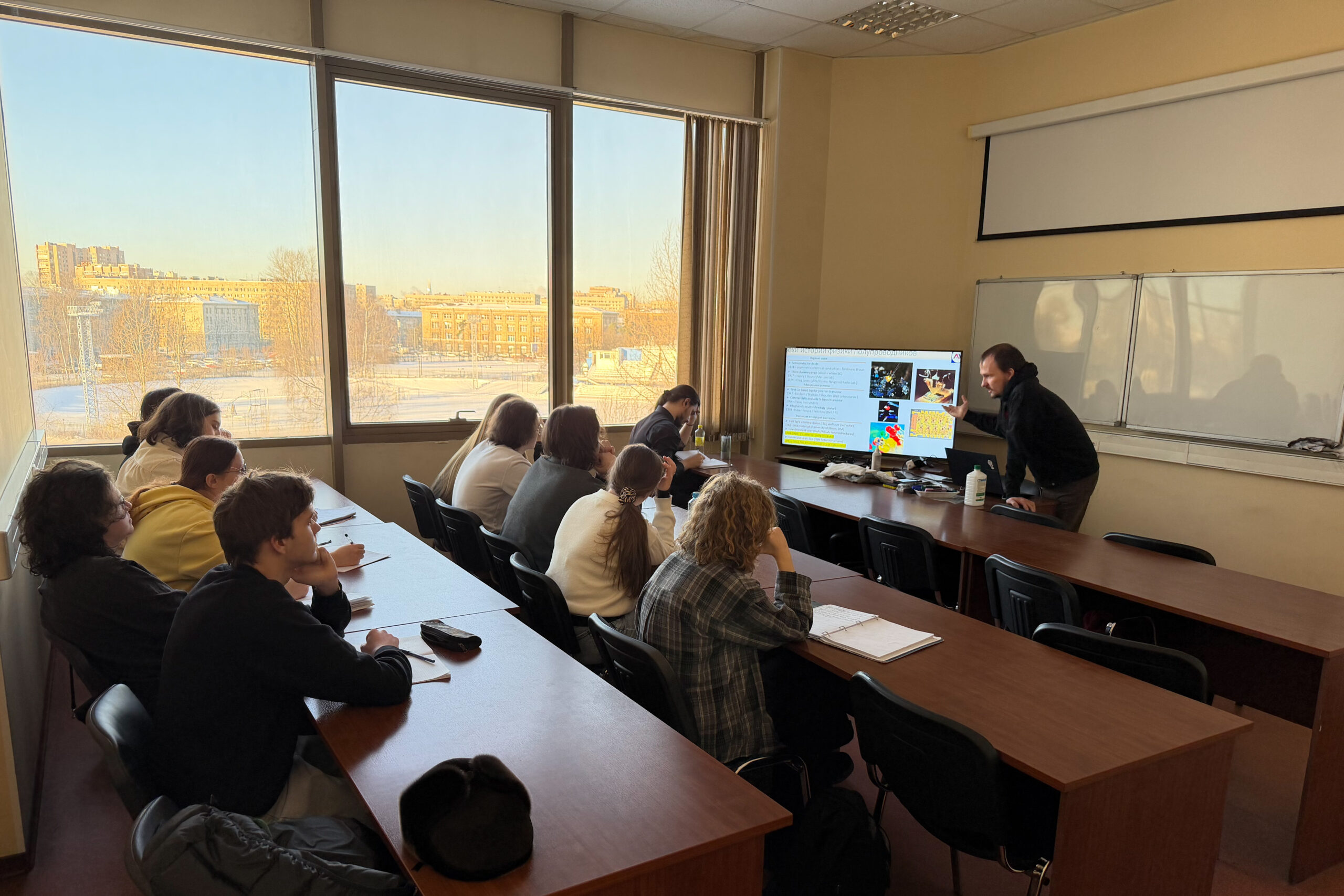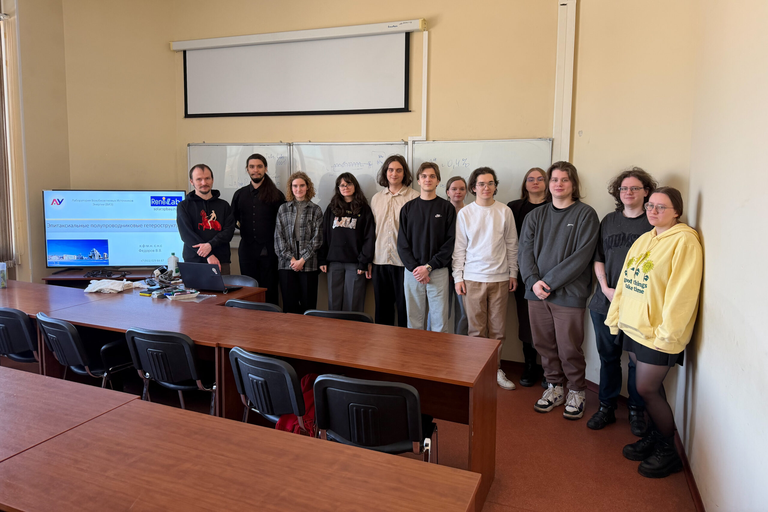 Гостей встретил проректор по науке, заведующий лабораторией возобновляемых источников энергии, профессор Иван Мухин. После приветственного слова для будущих физиков прочитали лекцию по молекулярно-пучковой эпитаксии — основному методу получения полупроводниковых наноструктур.